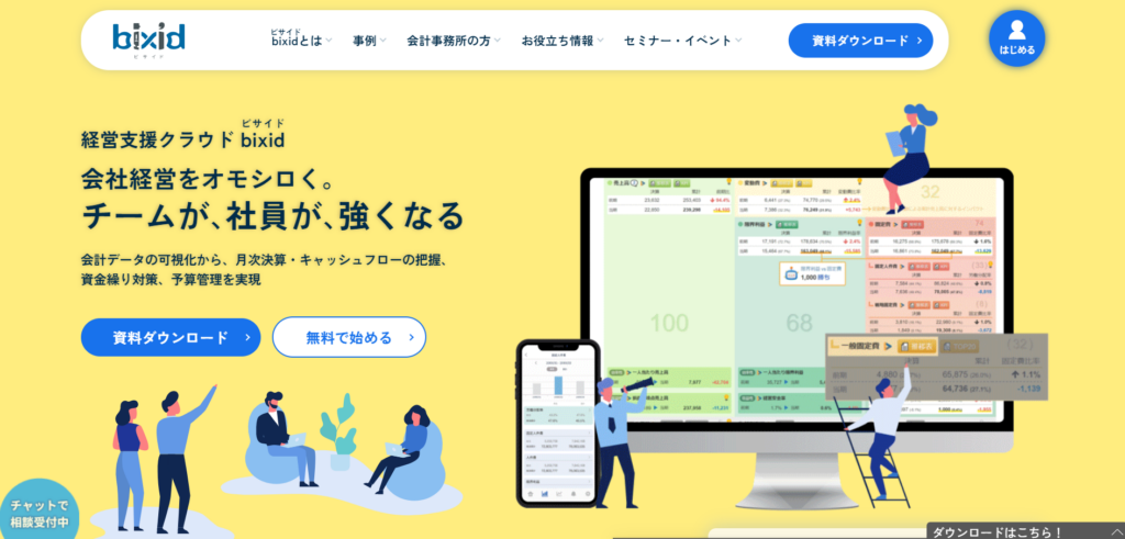 bixid(ビサイド)は会計ソフトのデータをアップロードするだけで、自社の経営状況をを可視化し、月次経営分析レポートを作成してくれるサービスです。