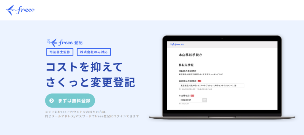 このページではfreee株式会社が提供している『freee登記』の特徴と使い勝手の印象をレビューしています。 freee登記は、株式会社の登記変更に必要な書類をリーズナブルな料金で作成できるサービス。 相場の3分の1から4分の1の費用で、登記変更書類が作成で...