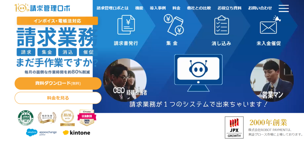 請求管理ロボは継続請求に特化したクラウド請求管理ソフトで、毎月の請求を消込作業まで自動化してくれます。